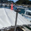 右舷ラブレール部分にFRP補修箇所有り。写真参照。