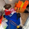 キャビン内は、撮影時には私物がそのままになっておりましたが、法定設備や釣り道具一式を収納できる十分なスペースが確保されています。
